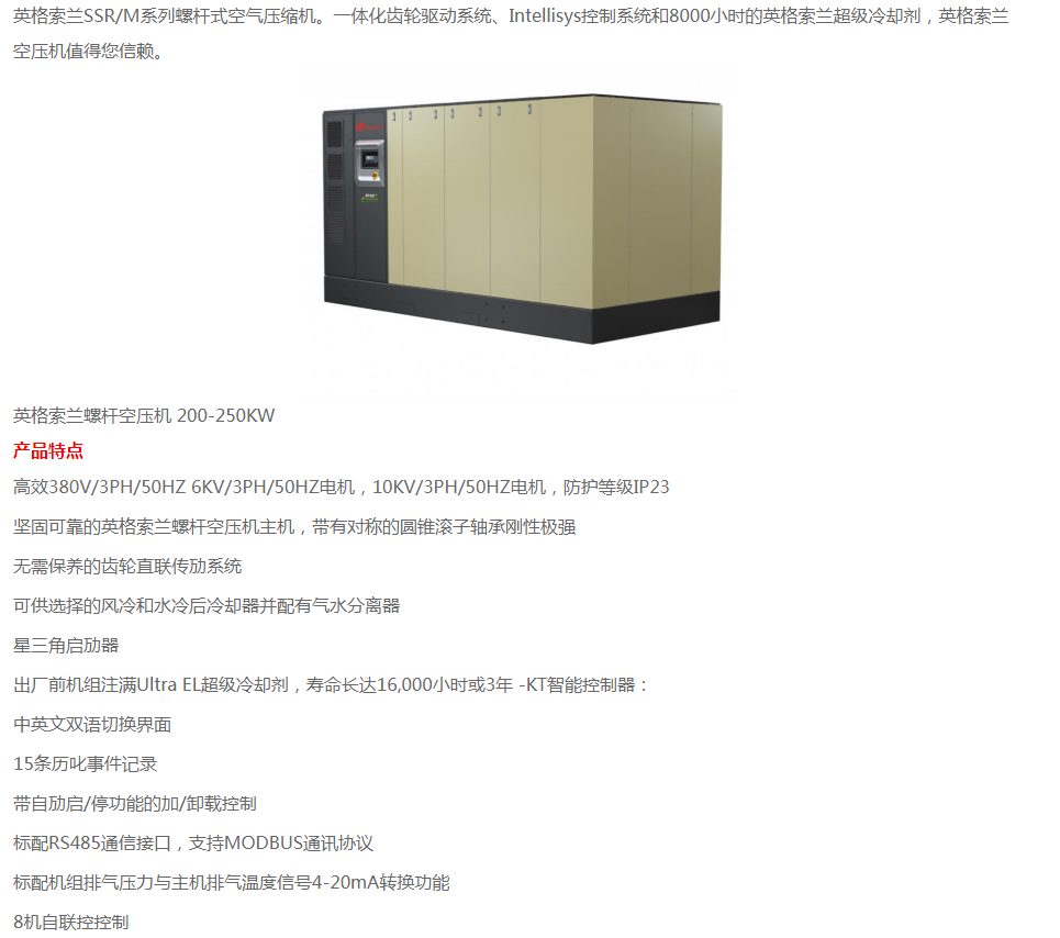 濟(jì)南銳博特機(jī)械設(shè)備有限公司是英格索蘭空氣壓縮機(jī)的授權(quán)代理商,代理銷(xiāo)售美國(guó)英格索蘭全系列的空壓機(jī)及后續(xù)處理設(shè)備。公司自成立以來(lái),經(jīng)過(guò)公司全體同仁不斷努力,開(kāi)拓創(chuàng)新,以優(yōu)良的技術(shù)、完善的售后服務(wù),使得公司贏得了一個(gè)又一個(gè)的誠(chéng)心客戶。我公司擁有多名專(zhuān)業(yè)的銷(xiāo)售及售后服務(wù)人員,為客戶提供空壓系統(tǒng)的售前、售中及售后的全方位優(yōu)質(zhì)服務(wù)。另公司有多名具有英格索蘭壓縮機(jī)授權(quán)服務(wù)證書(shū)的服務(wù)工程師,能維修和保養(yǎng)國(guó)內(nèi)外各種品牌空壓機(jī),公司各種國(guó)內(nèi)外品牌空壓機(jī)配件庫(kù)存齊全。